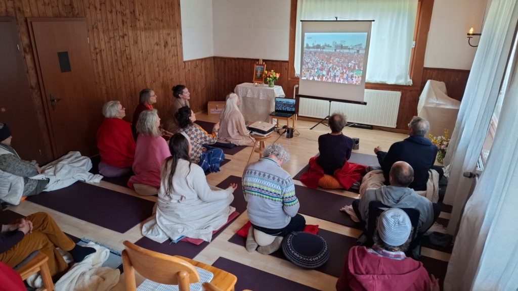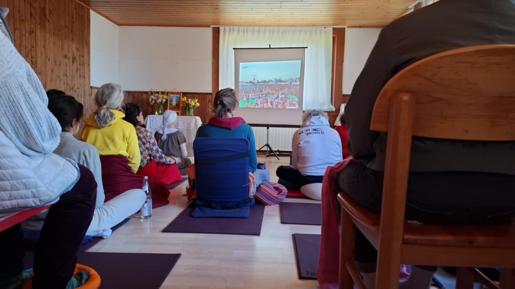 Die Teilnehmer freuten sich ganz besonders darüber, dass das Diskurs-Programm in Indien tatsächlich live übertragen wurde und am Ort der Meditation von Dienstag bis zum Gründonnerstag täglich um 14:30 Uhr gemeinsam geschaut werden konnte.