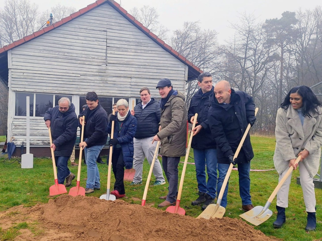 Um 11 Uhr startete dann das offizielle Programm. Ein Sandhaufen und die Spaten, geliefert von der Firma Engel, warteten am Platz neben der Baustelle. So war alles für den symbolischen ersten Spatenstich bereit.