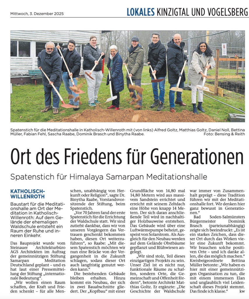 KategorienPressespiegel SchlagwörterBau der Meditationshalle, Bauprojekt, gemeinnütziges Bauprojekt, Ort der Meditation, Spatenstich