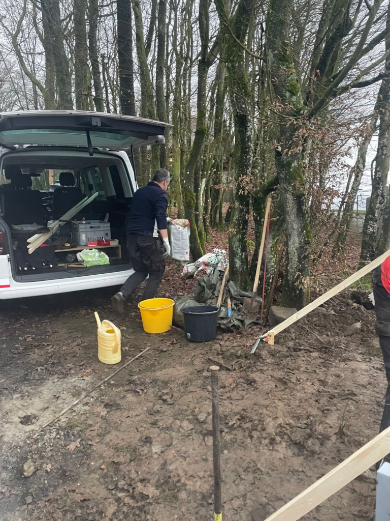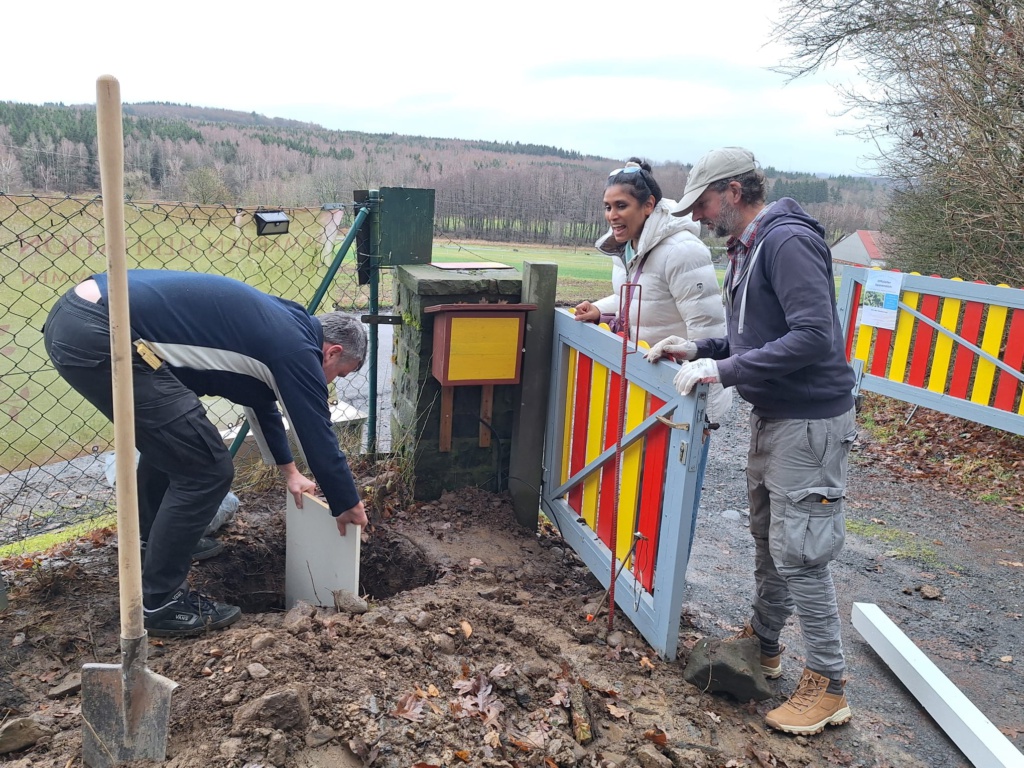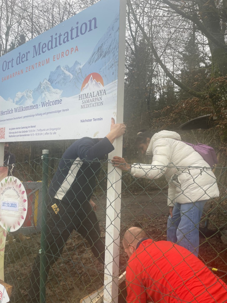 Die winterlichen Temperaturen hatten das Aufstellen des neuen Schildes am Ort der Meditation etwas verzögert, aber jetzt waren die Temperaturen passend und es konnte angebracht werden.