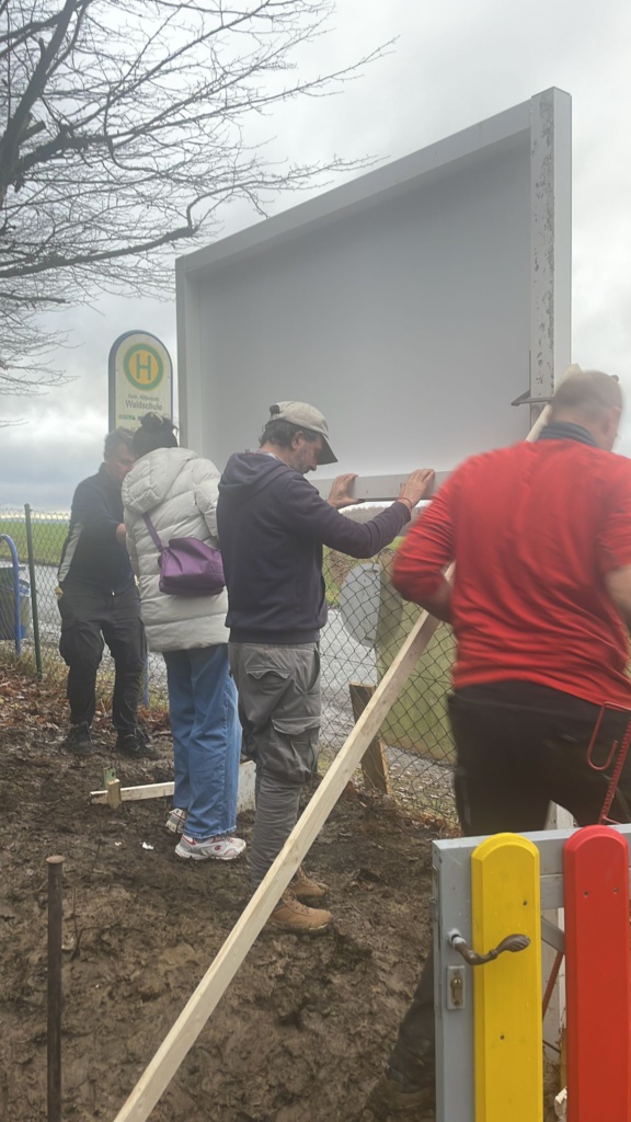 Jetzt ist es für alle zwischen Eingang und Bushaltestelle sichtbar.