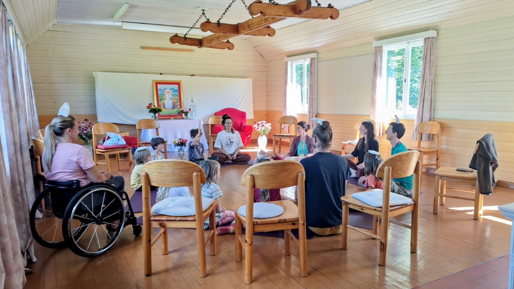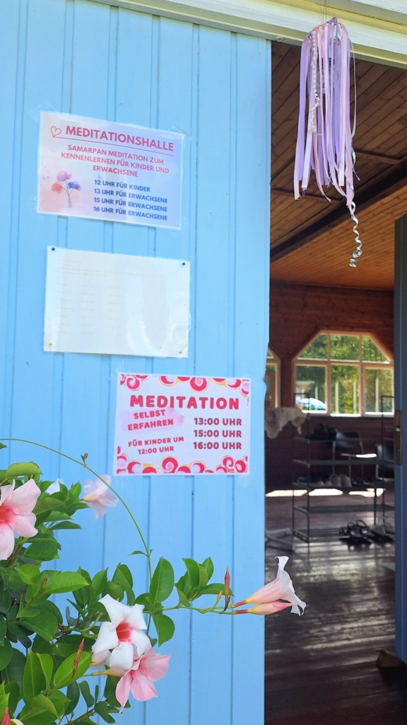 In der Meditationshalle fanden mehrere kurze Einführungen in die Meditation statt – eine davon speziell für unsere kleinen Gäste. Es war sehr schön, die Kinder zu erleben, wie sie die Meditation ihrem Alter entsprechend entdecken und ausprobieren konnten.