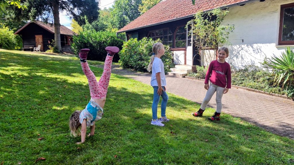 Nach ein paar Routinearbeiten genossen wir zu siebt den Sommertag im September im Freien unterm Baum.