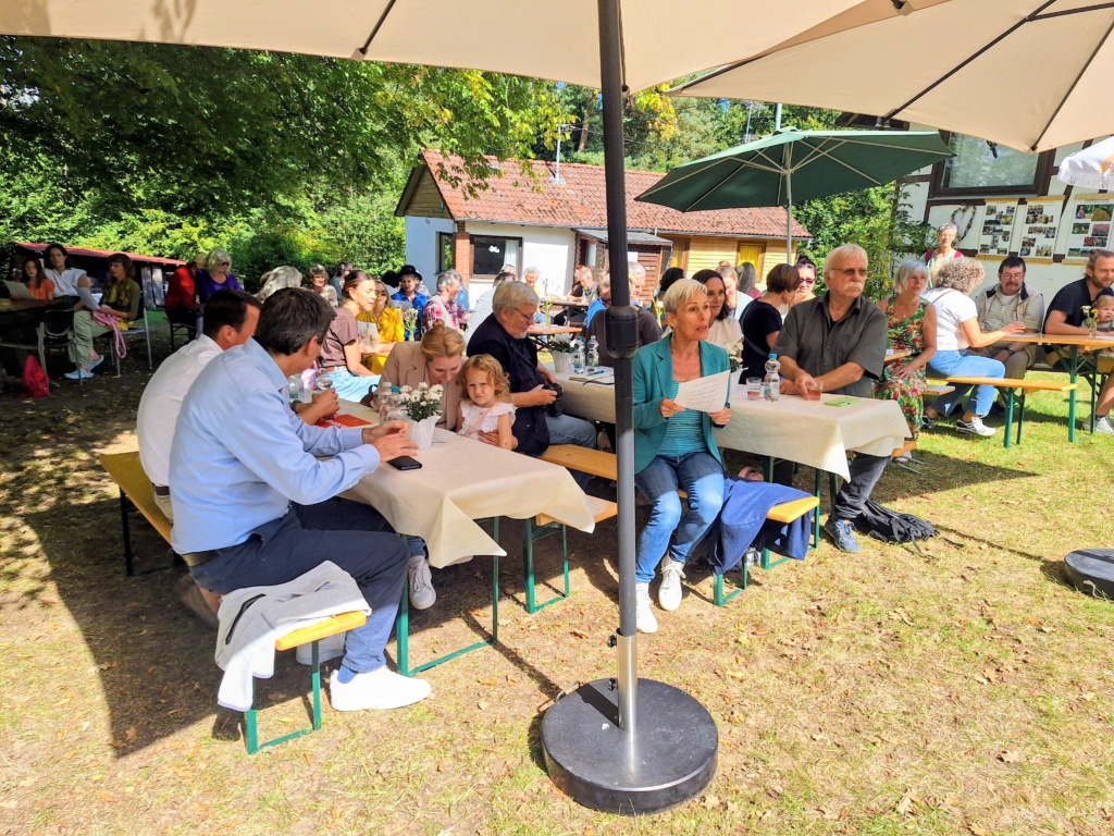 Wir freuen uns sehr, dass auch der Bürgermeister, Herr Brasch, ein Grußwort sprach. Er lobte unsere Gemeinschaft dafür, dass wir diesen Ort erhalten und zu einem wunderschönen und friedlichen Ort machen. Er sagte, dass es nicht nur der Tag der offenen Tür sei, sondern auch ein Ort der offenen Türen.
