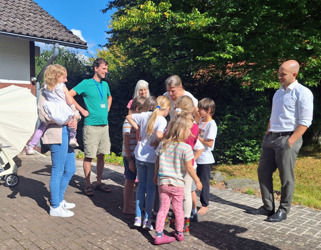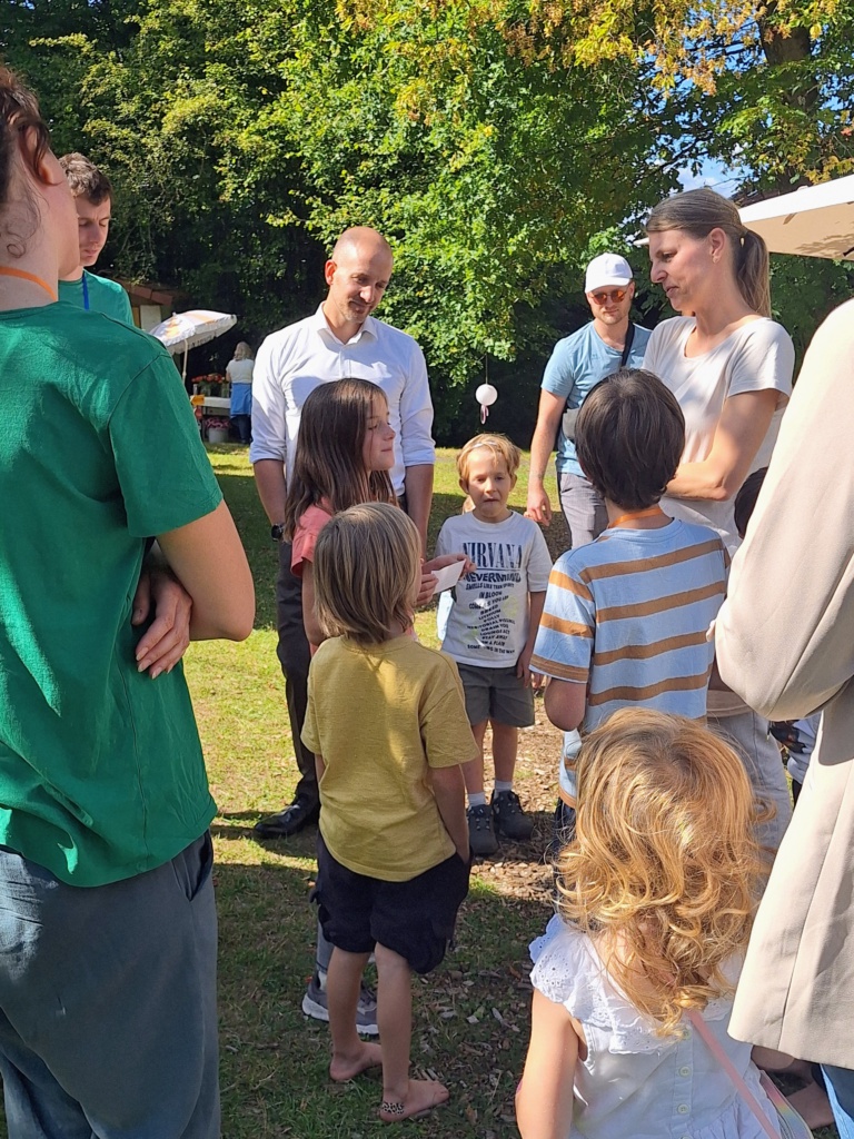 Für die Kinder gab es tolle Aktivitäten mit Basteln, Sportspielen und einer Schatzsuche, an der auch der Bürgermeister mit seinem Kind teilnahm.